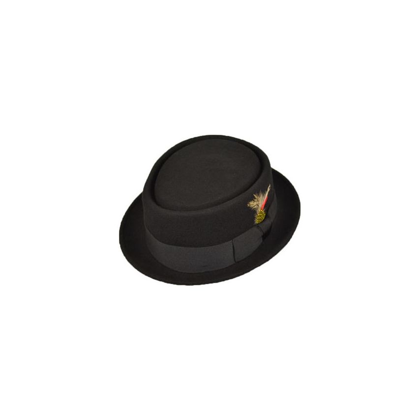 Black Wool Felt Crushable Pork Pie Hat - Black
